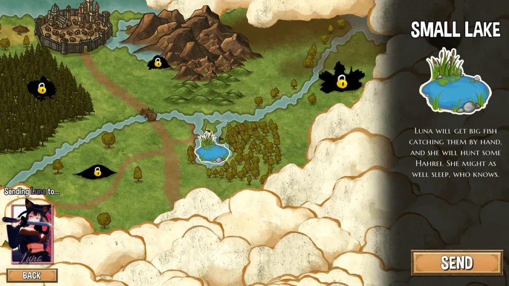 - Venture Out: This is where classic RPG elements shine. You’ll explore diverse regions, tackle Hero’s Harem Guild quests, and gather vital materials. Whether you’re mining ore in the Glimmerstone Caves or fishing at Serene Lake, this Hero’s Harem Guild resource gathering phase is crucial for upgrading your gear, your hall, and crafting gifts.