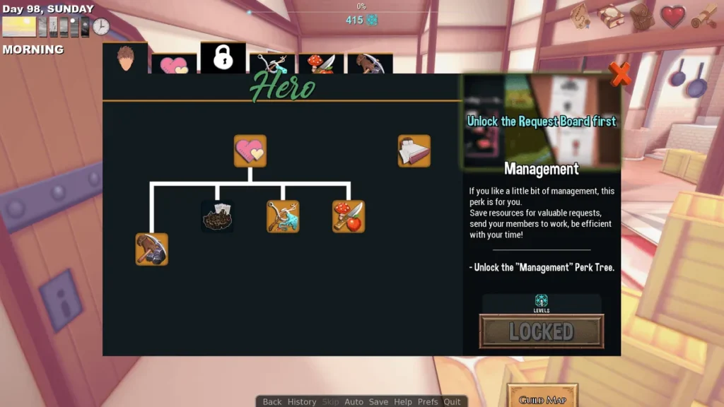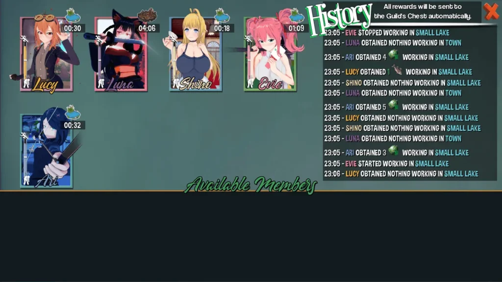 - Deepen Bonds: Evenings are for social interaction. This is where the magic of the Hero’s Harem Guild relationship system unfolds. Through conversations, giving gifts, and making choices during events, you’ll strengthen your ties with each guild member.